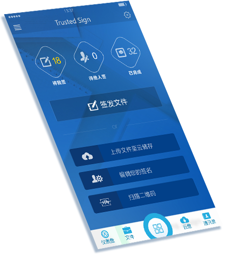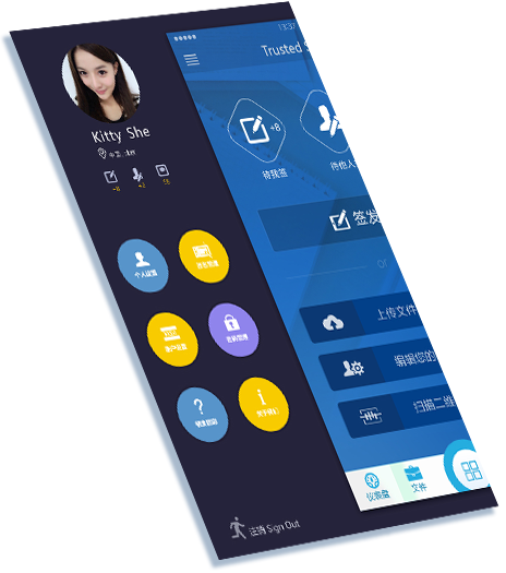 可信签是基于SaaS模式的文档签名云平台,是您可以信赖的电子签名专家。使用模式包括个人对个人、企业对企业、企业对个人等。实名认证后的个人和企业可使用颁发的证书对文件进行签名、流转、存档等。
